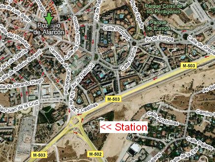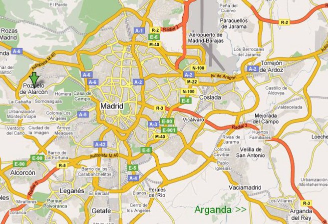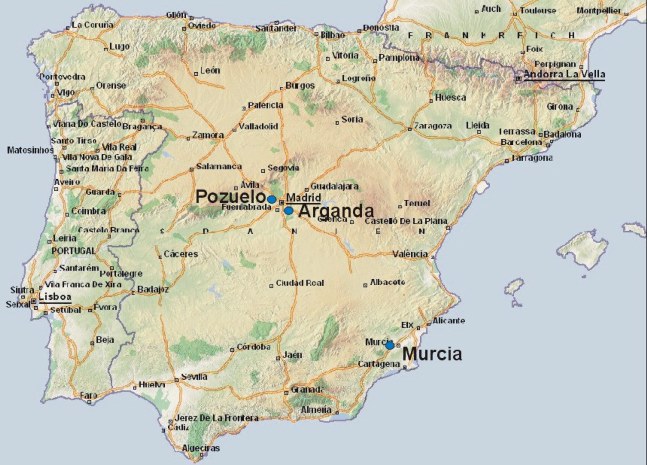 In der bearbeiteten Google Karte oben sind Arganda und Pozuelo hervorgehoben.